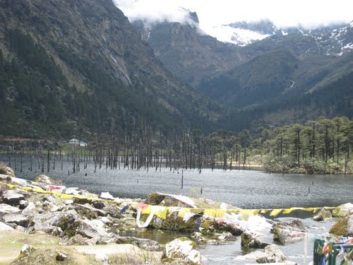 § Sungester Lake: Popularly known as Madhuri Lake (after the movie shooting of Koyla done here) is located 35 kms. away from Tawang near the China Border. The drive to Sungester Lake is full of thrill and one can still see the war bunkers that had been used during the Chinses aggression in 1962 and the beautiful P-TSo lake.