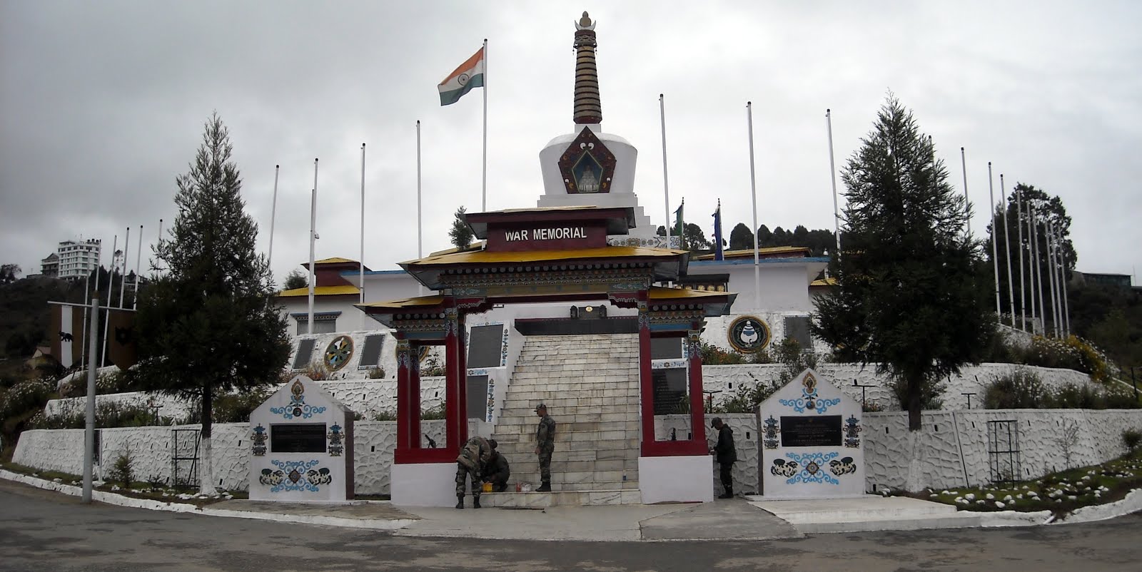 § Tawang War – memorial: The memorial is dedicated to the martyrs of the 1962 Sino-Indian war. The memorial is 40-foot-high and like a stupa in design. It is locally called ‘Namgyal Chortan’. The names of 2420 martyrs imprinted in gold on 32 black granite plagues.