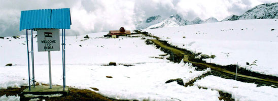 § Bum-La Pass / Indo-China Border (altitude: 15000 feet): If the routes are clear and there’s no snow one can go watch the Indo-China border. The flags of two countries are placed 10 feet from one another and the small strip of land in between is "No Man's Land”. Usually "No man's Land" is more than a kilometer wide on International Border, but with China still claiming 90,000 sq Kms of India it occupied for two months in 1962, technically speaking, one finds himself at the Actual Line of Control on a disputed territory.